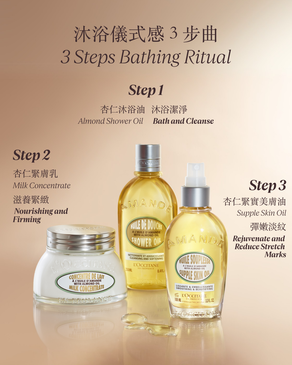 Step 1: 杏仁沐浴油 - 沐浴潔淨