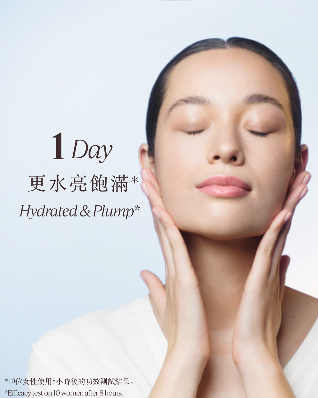 *10位女性使用8小時後的功效測試結果:肌膚更水亮飽滿